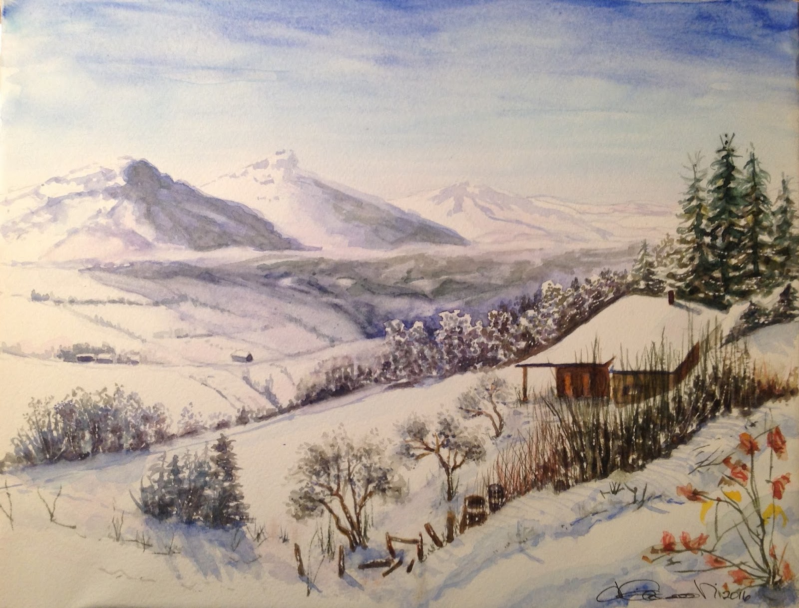 Ciam Prima Lezione Di Acquerello Del 13 Paesaggio Invernale Casacalendese