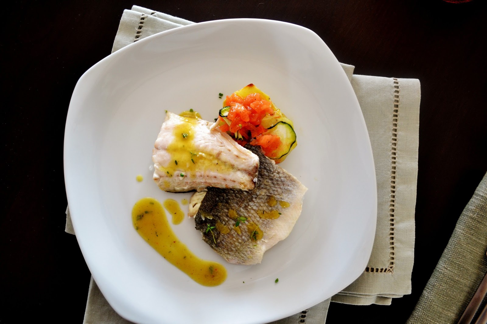 Filetto Di Branzino Al Sale Con Tortino Di Verdure Concasse Di Pomodoro E Salsa Al Miele Dafne S Corner Il Gusto