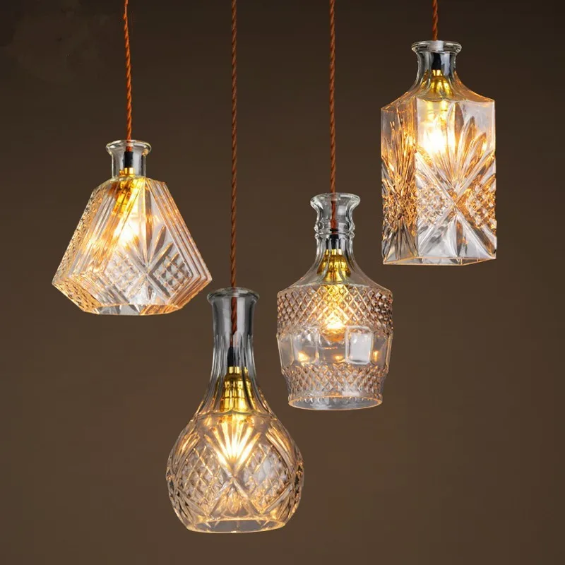 Lampadari Illuminazione In Ottone Antico Lampadario Luci A Soffitto Per Soggiorno Lampadario Nordic Creative Vetro Intagliato Bottiglia Lampadario Lampadario Di Cristallo Retro Tavolo Bar Ristorante Con Tre Lampadari